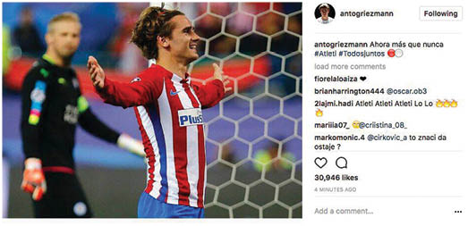 در چند هفته گذشته اخبار ضد و نقیضی در مورد آینده گریزمان، ستاره فرانسوی اتلتیکو منتشر شده و مصاحبههای پیاپی او هم ابهامها را افزایش داده است. در حالی که او در یکی، دو مصاحبه از احتمال رفتنش به منچستریونایتد گفت، چند بار هم بر ماندن در اتلتیکو تاکید کرد. حالا او اکنون با انتشار عکسی از شادی گلش بعد از گلزنی به لسترسیتی در لیگ قهرمانان اروپا نوشت: «الان بیش از همیشه، اتلتیکو در کنار هم.» احتمالا او این پیام را برای پایان دادن به شایعات منتشر کرده اما بعید نیست به زودی در مصاحبهای دیگر از احتمال جداییاش از این باشگاه صحبت کند.